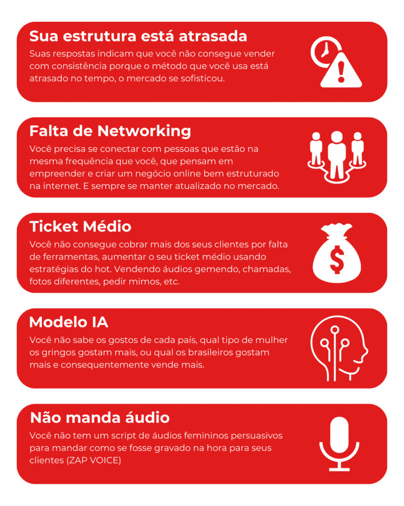 Suas respostas indicam que você não consegue ESCALAR suas vendas no HOT por que…